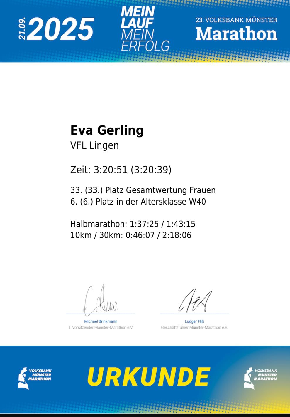 • 6. Platz in ihrer Altersklasse W40