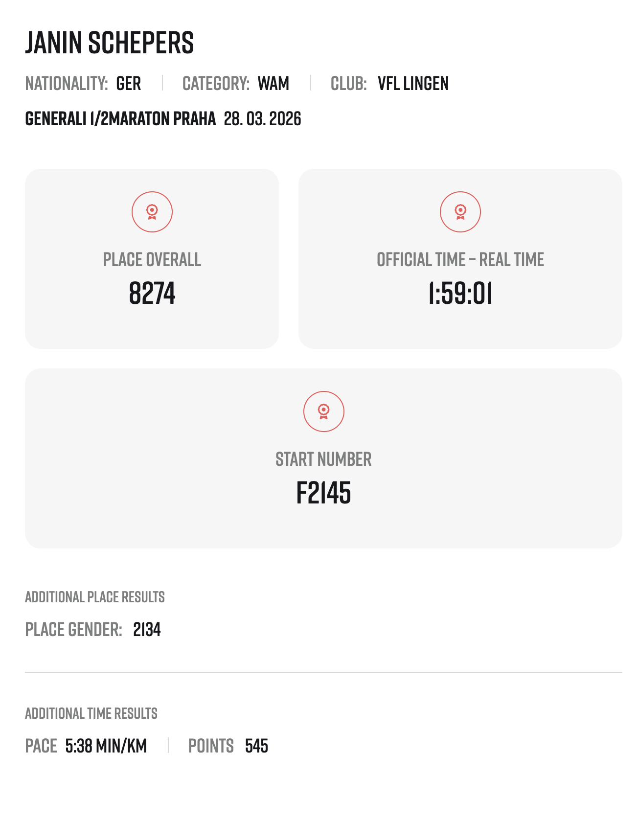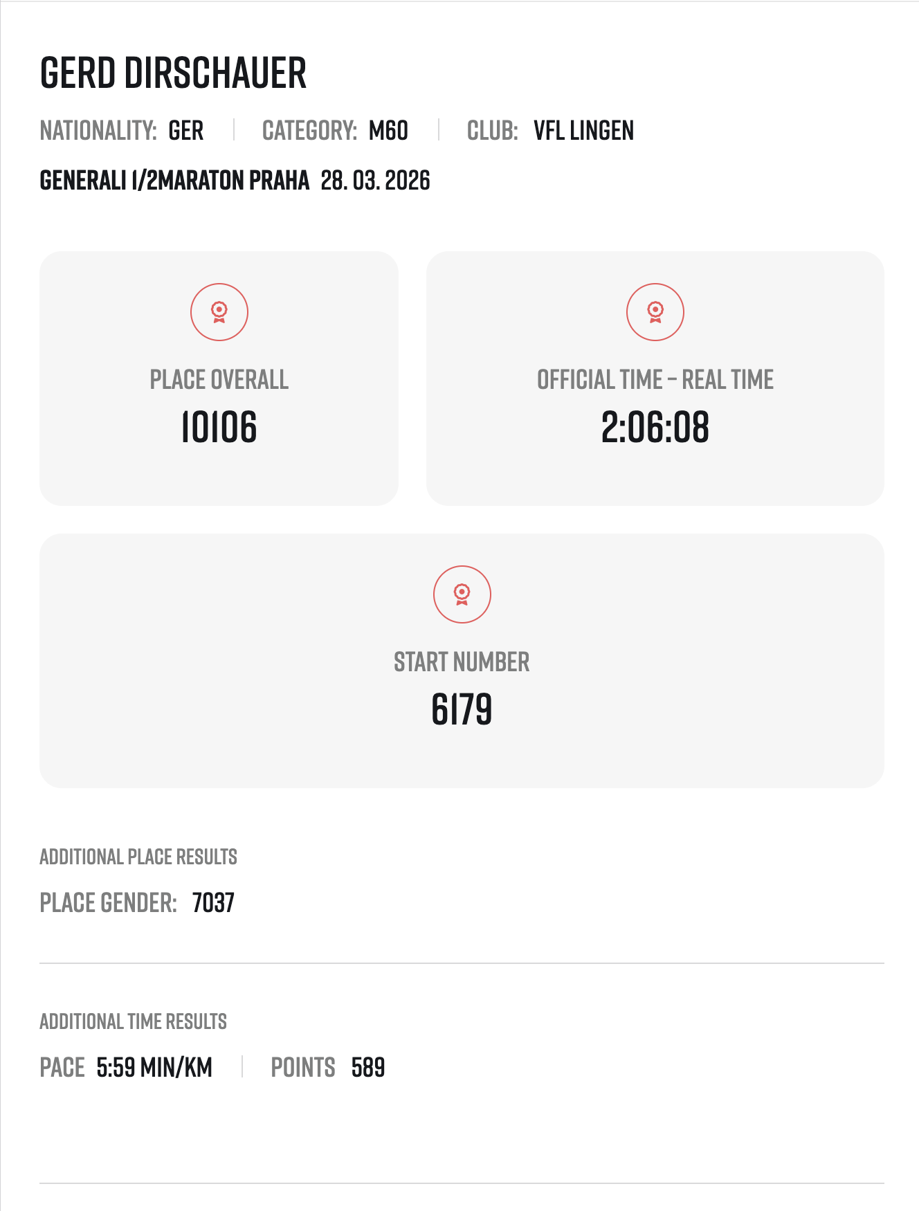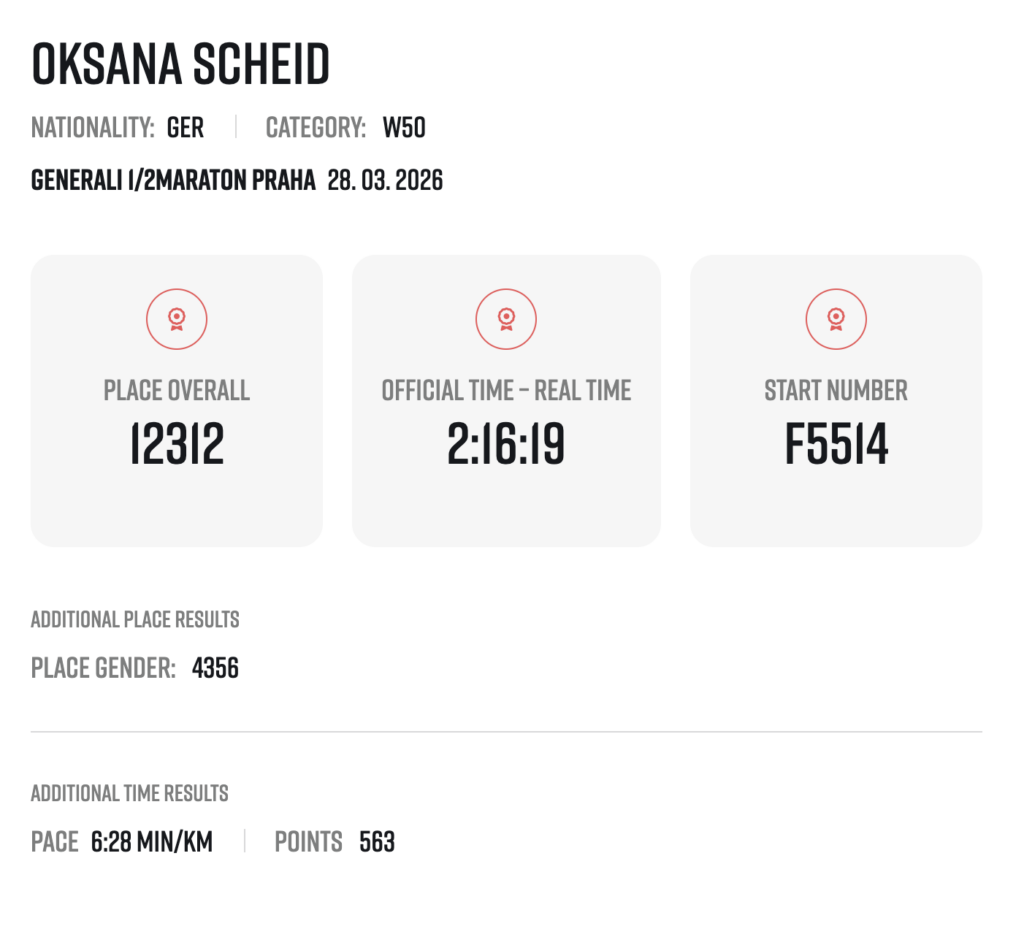 Für Janin lief es dabei besonders gut. Sie blieb mit einer Zeit von 1:59 Stunden unter der 2-Stunden-Marke. Oksana lief die 21.1 km in 2:16 Stunden und auch Gerd hatte allen Grund zur Freude. Mit seinem Finish in Prag ist er seinem Ziel, der SuperHalfs-Serie zu komplettieren, wieder ein gutes Stück näher gekommen.
