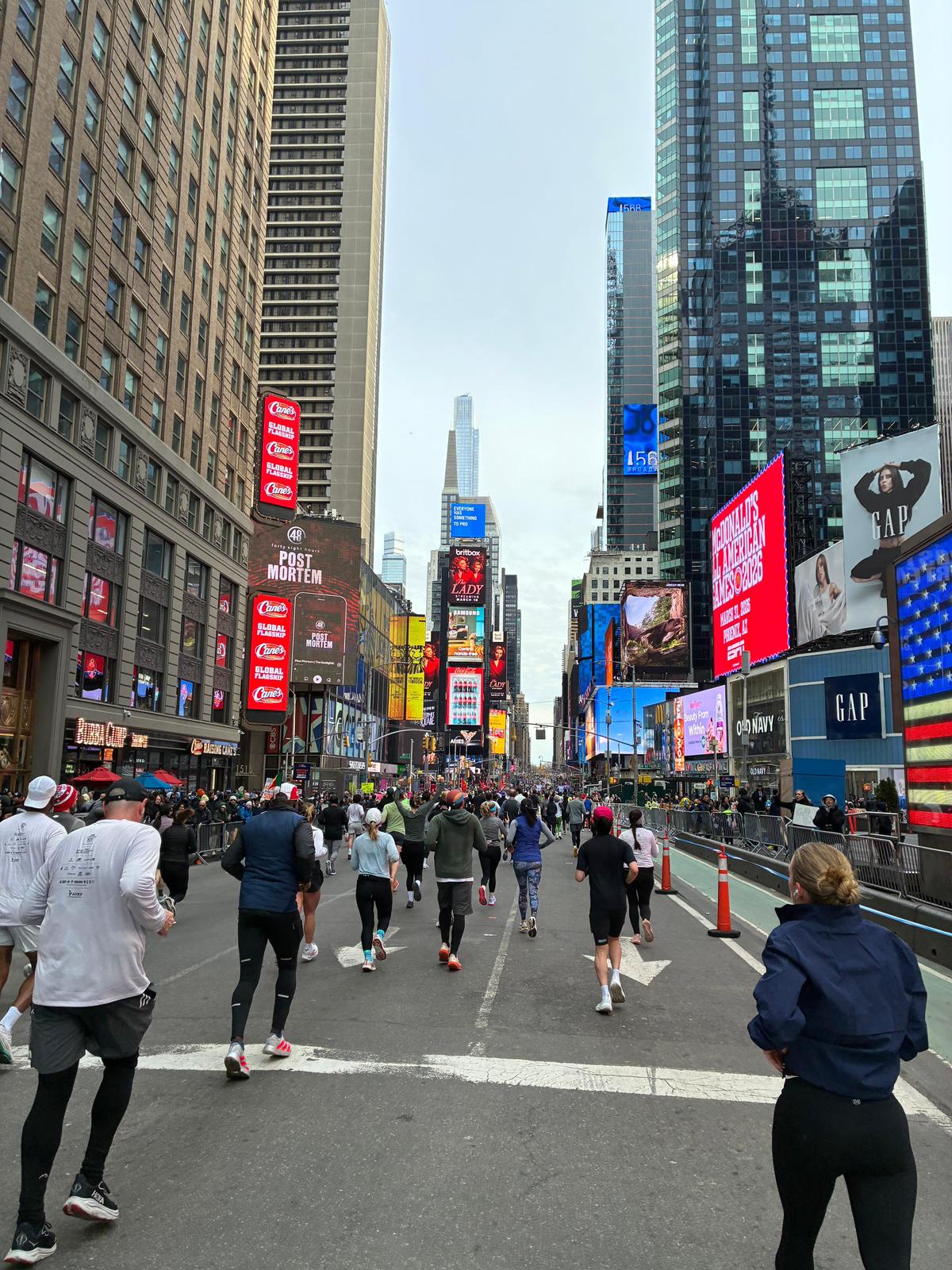 Der Lauf selbst war alles andere als ein Spaziergang: Das ständige Auf und Ab im Streckenprofil, der frühe Start und die Kälte machten ihn zu einer echten Herausforderung. Aber die Stimmung unterwegs war einfach überwältigend: jubelnde Zuschauer auf der Brooklyn Bridge, lautstarkes Anfeuern auf dem Times Square – da konnte man gar nicht anders, als alles zu geben. Am Ende kamen alle glücklich und beeindruckt ins Ziel.